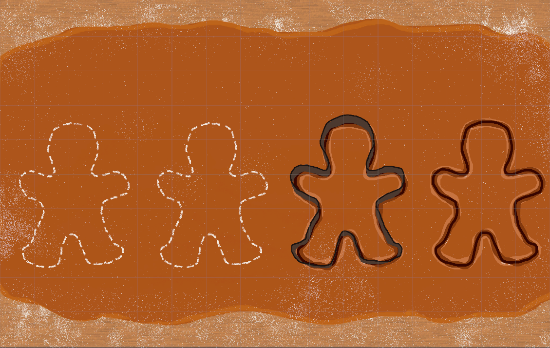 Gingerbread cookie cutting Game where you are using a cookie cutter on the dough to make gingebread men